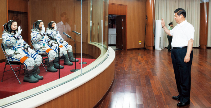 Verabschiedung der Taikonauten vor dem Start des bemannten Raumschiffs Shenzhou 10