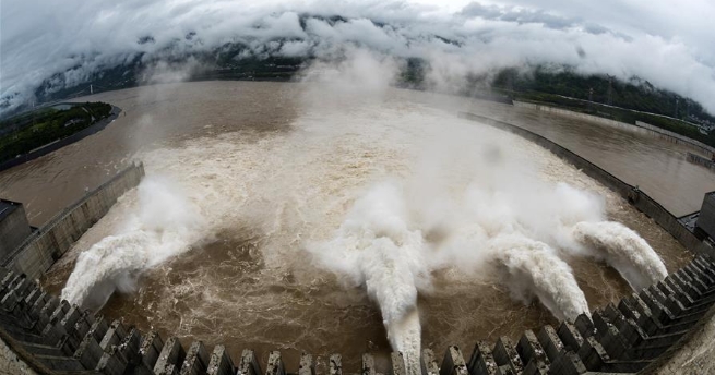 Das Foto vom 5. Juli 2018 zeigt die Wasserentnahme aus dem Drei-Schluchten-Staudamm, einem gigantischen Wasserkraftwerk am Jangtse in der zentralchinesischen Provinz Hubei.