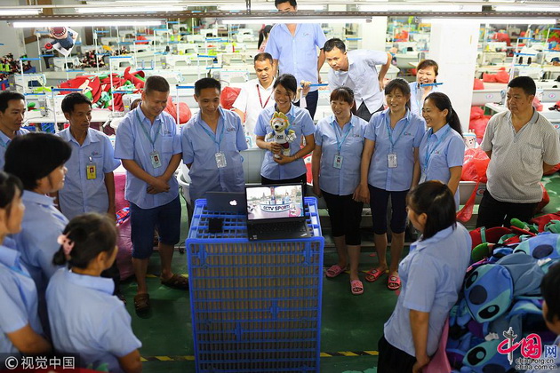 Chinesische Arbeiter, die f¨¹r russische WM-Maskottchen herstellen